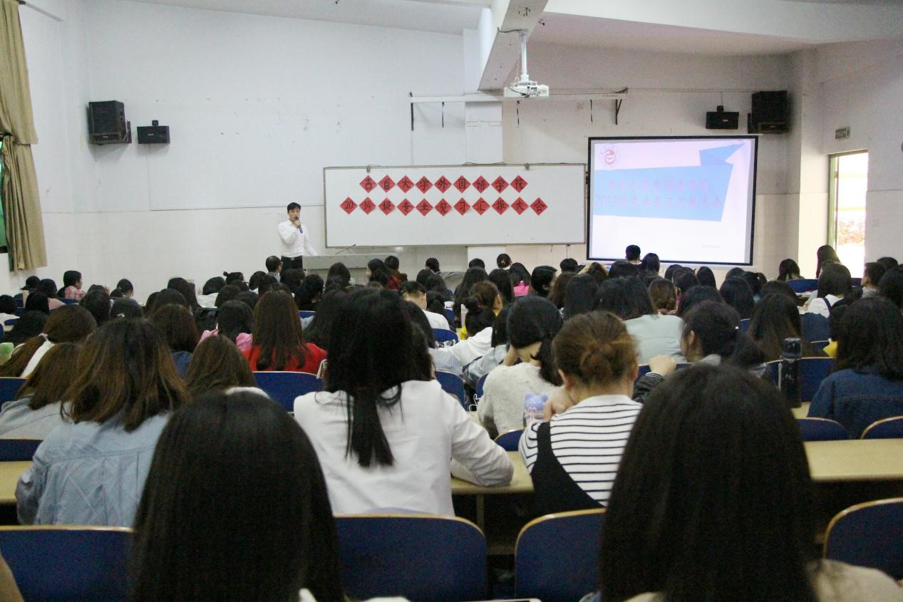 本网讯(通讯员 丁柏顺龙锐 张丽娜)5月4日中午,mk体育于逸夫楼3218教室举行2014级专业见习汇报大会。公司党委书记石红梅、副经理徐兴胜、英语系主任蒋林平、日语系教研室主任王玉芬出席会议,14级全体员工参与本次大会,会议由教务秘书窦文祥主持。
