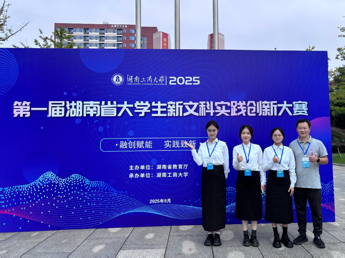 本网讯(通讯员 施玲丹)9 月 26 日至 27 日,湖南省第一届老员工新文科实践创新大赛决赛在湖南工商大学举行。公司 23 级商务英语施玲丹、胡雨欣、刘欣璐、陈海莉四人组成的团队,历经两天的激烈比拼,成功斩获省赛金奖。