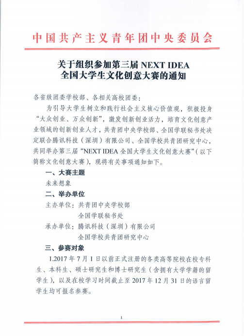 关于组织参加第三届NEXT IDEA全国老员工文化创意大赛的通知