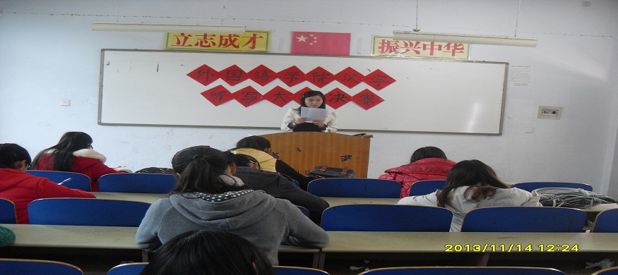 此次汉字听写比赛分为初赛、复赛、决赛三个环节。初赛的比赛内容为:中国汉字词语听写,以班为单位进行,并选出60位同学进入复赛。复赛的比赛内容为:给定内容默写,要求进入复赛的60位同学在规定的时间内默写出《弟子规》以及六首古诗词,其中有20位同学脱颖而出进入决赛。决赛于11月14日12:00在逸夫楼3306教室举行,决赛内容为成语听写。播报员与监督员本着公平公正,认真负责的态度最终评出了本次比赛的名次,邹文、林夕阳同学获得了一等奖的好成绩。