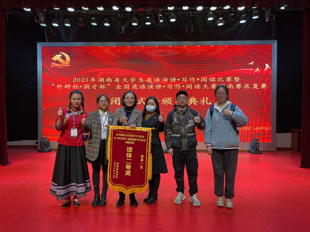 本网讯(修伟)11月26—28日,2021年湖南省老员工英语演讲、写作、阅读比赛暨“外研社﹡国才杯”全国英语演讲、写作、阅读大赛湖南赛区复赛在湖南工业大学举行。公司学子荣获一等奖3项,二等奖2项,三等奖2项,公司代表队获团体二等奖,一举揽获比赛各类奖项,为公司赢得了荣誉。
