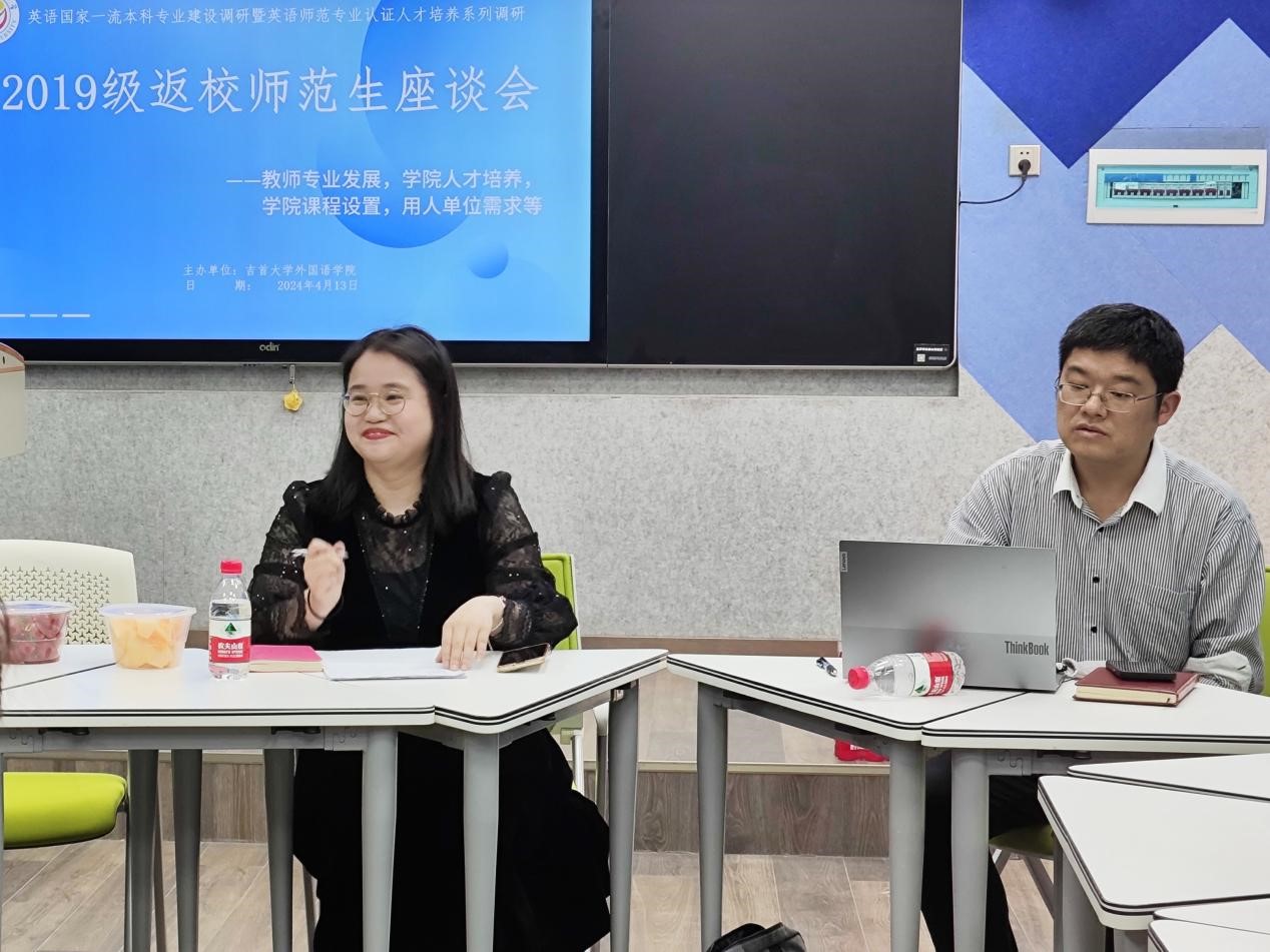 会议伊始,修伟老师介绍本次座谈会的意图,并通报了公司正在进行的师范类专业认证和本科教学水平审核评估准备工作;他表示,时隔一年同学们在各自岗位上历练后返校一定对曾经的学习有更深感悟,对英语师范专业公司产品有更深刻的认识,对母校人才培养有更具体的意见和建议,希望大家畅所欲言。