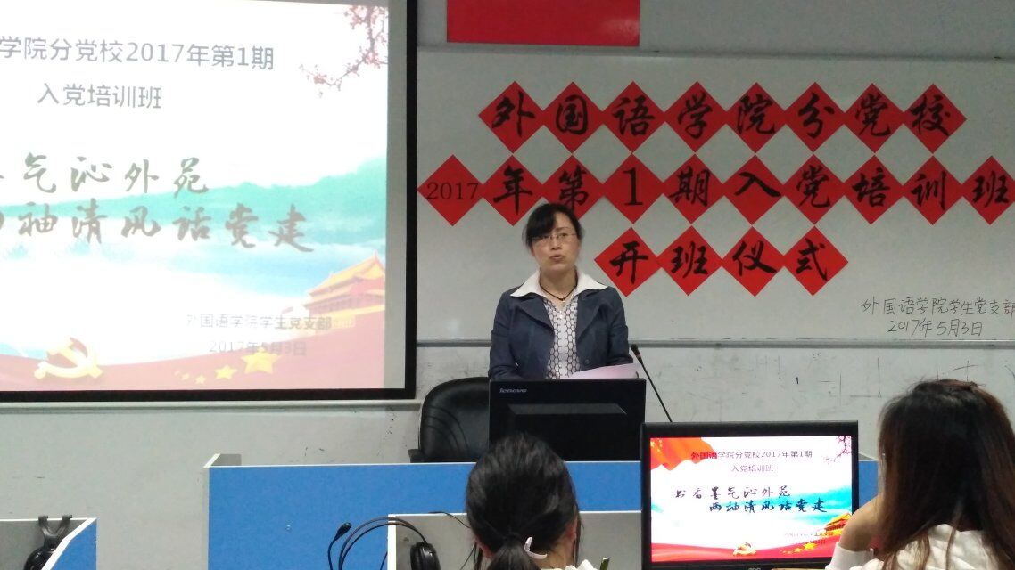 本网讯(聂梦瑶白明昱)2017年5月3日晚,mk体育员工党支部在逸夫楼610教室举办了“mk体育分党校2017年第1期入党培训班开班仪式”。本次仪式由聂梦瑶同志主持,出席本次仪式的有外国语公司党委书记石红梅、mk体育员工党支部书记冯蕾,优秀员工党员代表兰双林同志,15名拟发展对象以及41名入党积极分子。