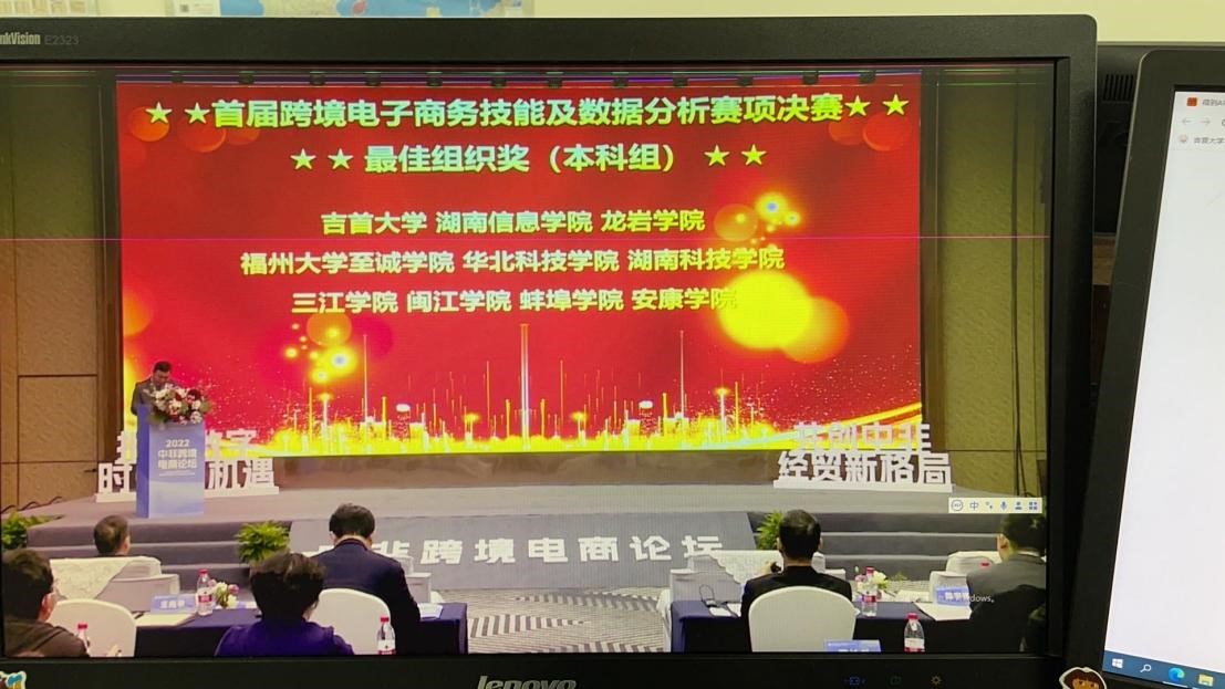 2022年第六届一带一路暨金砖国家技能发展与技术创新大赛由金砖国家工商理事会主办、中国(金华)跨境电商综合试验区协办,今年首次设立跨境电商技能及数据分析赛,助力“数字丝路”建设,推动中国与“一带一路”国家跨境电商发展,引导适应全球数字经济需要的创新型人才培养。此次大赛分为国内赛和国际赛,国内赛前两名获奖队伍代表中国参加2023年在南非举办的国际赛。大赛于6月启动,全国共有600余支本科队伍报名参赛。公司以28名商务英语专业员工为骨干,跨学科组建11支队伍、共33名同学参赛。其中8支队伍通过跨境电商知识理论赛、模拟实践赛,成功晋级复赛,2支队伍成功晋级决赛。决赛共有全国各级各类高校100支队伍参加,前10名授予一等奖。公司两支参赛队各自经过八个半小时不间断协作,按时提交数据分析报告并获得第二天的团队答辩资格,最终荣获一等奖、二等奖各1项。公司也因初赛、复赛、决赛的组织工作以及参赛团队的优秀成绩被主办方授予最佳组织奖。1118日在浙江金华举办的“中非跨境电商论坛”开幕式上,组委会专门为决赛获奖团队及优秀组织单位举行了颁奖仪式。
