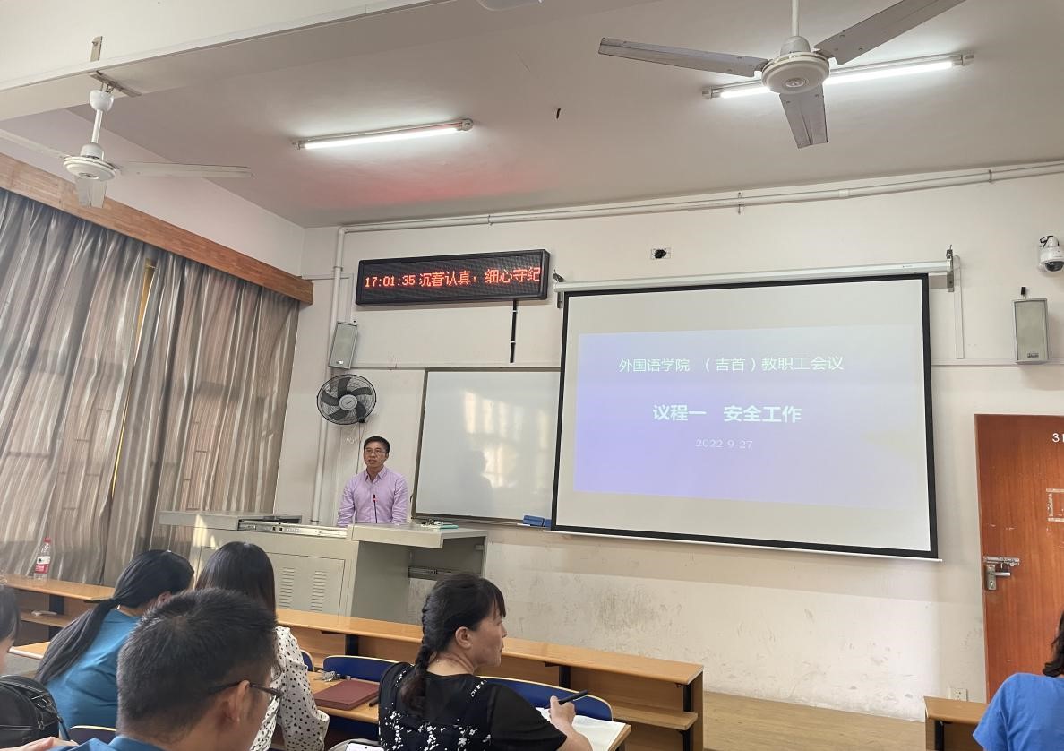 9月27日下午,公司在吉首校区1311教室召开教职工会议,部署安全维稳工作,会议由刘汝荣经理主持。