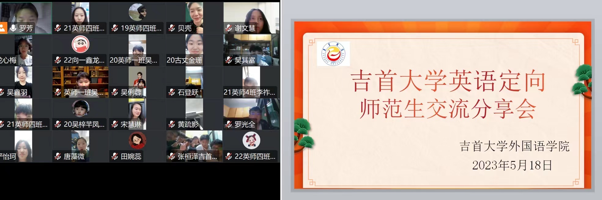 本网讯(龙思思,修伟)5月18日晚7:00,mk体育英语定向师范生交流会于线上如期举行,来自2019、2020、2021和2022级四个年级的英语定向师范生全员出席。会议邀请了即将毕业的2019级英语定向师范生代表就专业学习、语言技能训练、英语教师技能实践、专业见习与顶岗实习等做主题分享。